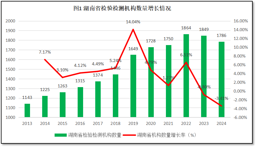 过去12年江苏省检验检测机构数量的变化如图1所示。